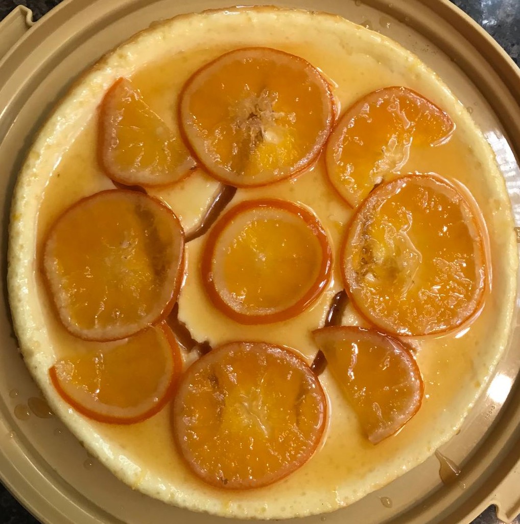 The recipe was well documented with personal notes, but I still screwed it up. I didn’t use parchment paper, because – what is that for anyway (asks the novice)? I couldn’t find one ingredient, so had to substitute, and accidentally left out another. The glazed oranges would not cooperate. The cheesecake came out with earthquake style cracks. I tried to fill them in with extra glaze. Can you tell? The result was the most “memorable” and delicious cheese cake ever!
