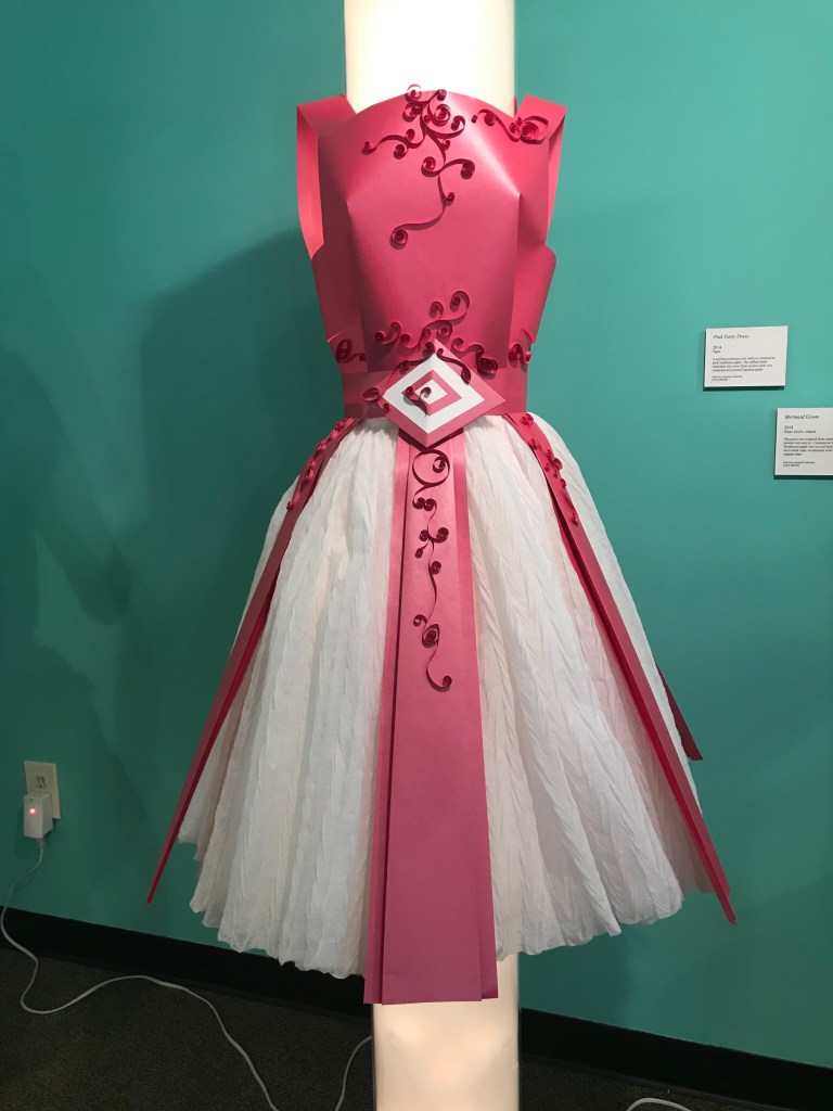 The special exhibit by Joan Son, “Paper Couture” was in honor of her mother who had saved Son’s childhood paper dolls. The exhibit itself was a recreation of some of her earlier paper doll dress designs, only in life size! Below is a selection of those designs: